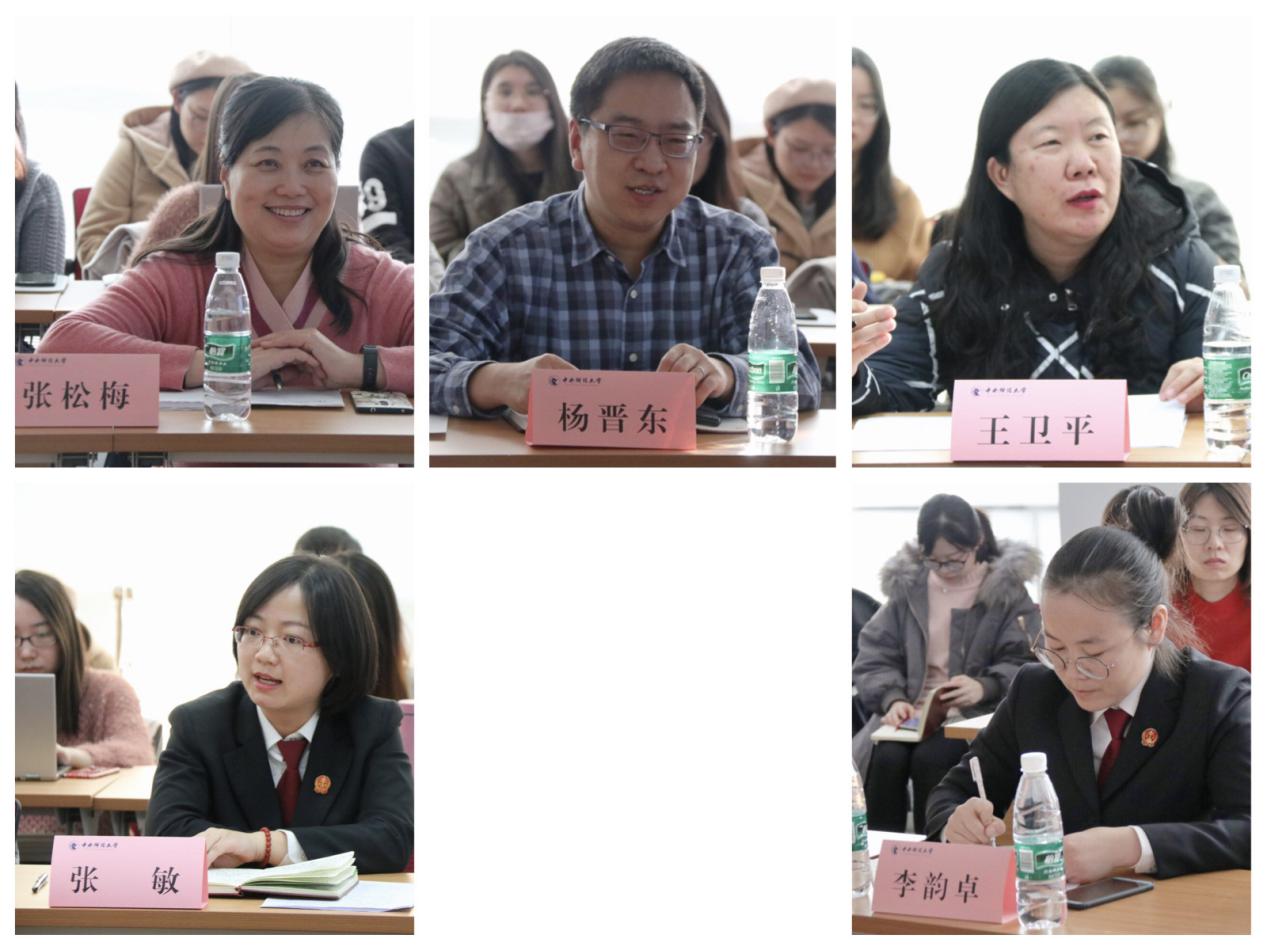 随后进入与谈人发言环节,张松梅副主任首先发言,一方面向各位同学强调了端正实习态度、认真对待基础性工作等法律实习中的注意事项;另一方面也向大家透露了法院招录时对于考试成绩以及案例分析能力的侧重等,为同学们的能力储备以及职业规划提供了有力指导。