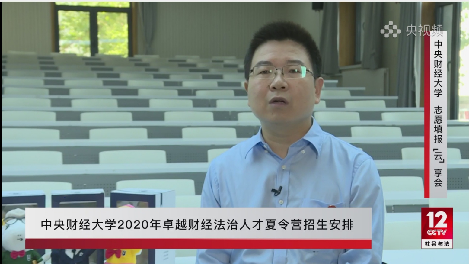 7月20日下午,公司在央视“社会与法”新媒体开展招生宣传。校招生办主任程丽芳带领观众游览了公司南路校园、介绍了中财大团队力量和办学特色。经理尹飞教授从财经领域卓越法治人才培养出发,详细介绍了tyc122cc太阳成集团的发展历程、团队科研、人才培养特色和举措。副经理李伟副教授介绍了卓越财经法治人才夏令营遴选流程和选拔标准,在线回答了申请者的提问。员工代表湘财证券董秘周卫青和国家开发银行总行董办党弘毅分享了在中财tyc122cc太阳成集团学习的感受、收获和建议。