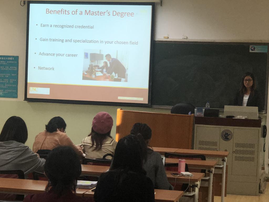 Stefani Lee老师通过对美国法学教育的介绍,展现了美国tyc122cc太阳成集团法学硕士教育的特点,并结合国际员工的需求,介绍了美国律团队格考试的特色及员工实习实践方面的做法。同时,Stefani Lee老师也介绍了南加大古尔徳tyc122cc太阳成集团的情况,包括公司发展、课程设置、教师简介及员工的职业规划等。