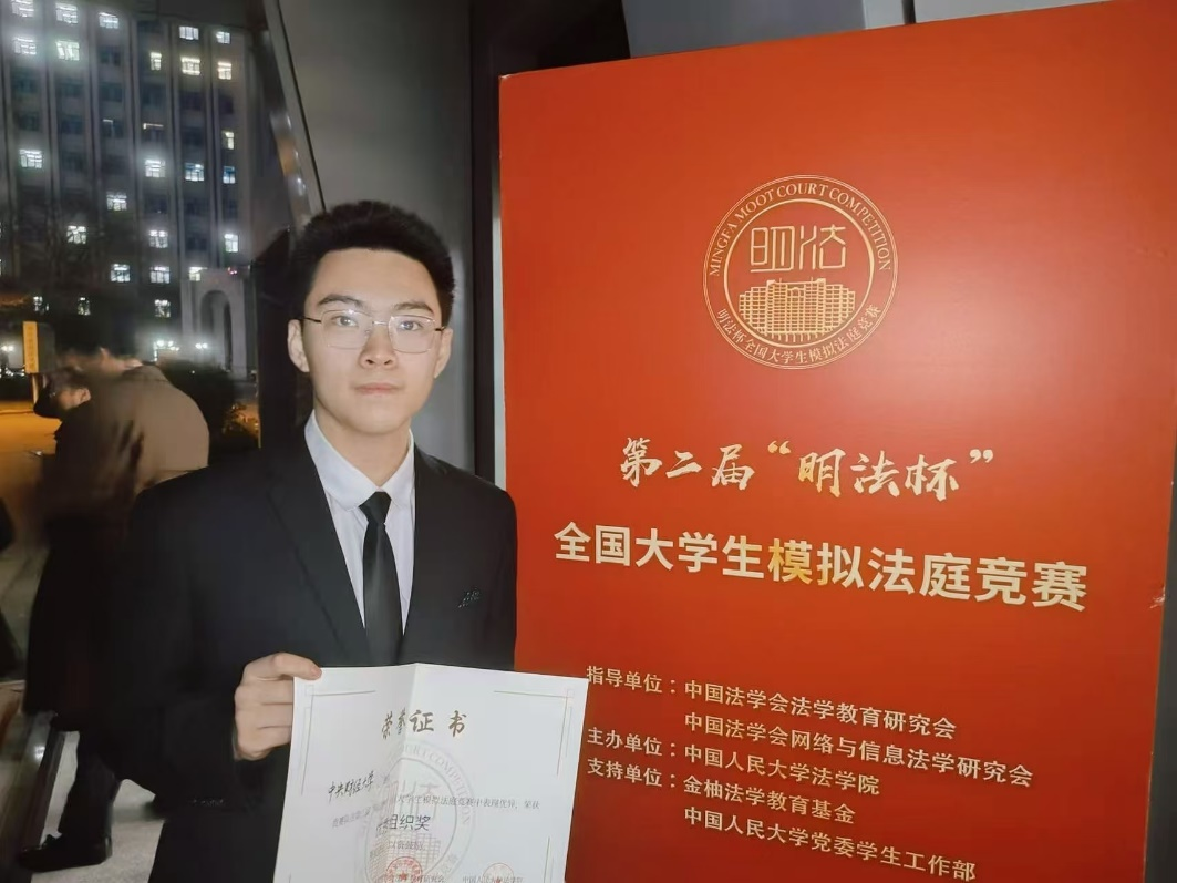 除了课程的学习,我还通过积极参与学术竞赛与实践活动,提升自己的综合能力。我参加了院内模拟法庭大赛以及安嘉杯全国家事法模拟法庭大赛并与成员均获得亚军。模拟法庭的经历让我意识到,法学不仅要掌握理论知识,更要通过实践来检验与提升自己的能力。在模拟法庭上,我和队友们面对复杂的案件,分析法律条文,辩论争议焦点,最终在激烈的竞争中获得了肯定。这不仅锤炼了我的法律实务能力,更让我深刻体会到,法律的魅力不仅在于理性与规则,它更是一种追求公平与正义的力量。