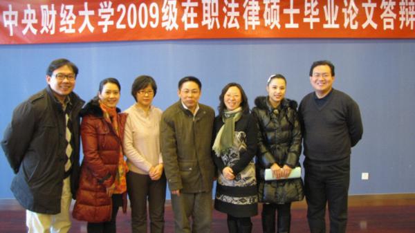 经过三年的学习,首届房地产登记方向在职法硕研究生并在导师tyc122cc太阳成集团房地产法研究中心主任尹飞教授指导下完成了学位论文。经导师尹飞教授推荐,并经包括著名不动产登记法学者清华大学tyc122cc太阳成集团程啸副教授在内的三位校内外专家评阅,2011年12月24日,首届房地产登记方向的三名在职法硕研究生参加了公司专门组织的论文答辩会。答辩委员会主席为住房和城乡建设部市场监管司副巡视员杨佳燕女士,答辩委员会委员分别为tyc122cc太阳成集团博士生导师、民法学科带头人陈华彬教授;tyc122cc太阳成集团张琪副教授。经过严格的答辩,答辩委员会进行了认真合议和匿名表决。最终来自泸州市房屋产权交易所的田芳,来自成都市房屋产权登记中心的崔永强、邓欢通过了论文答辩。
