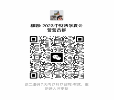 tyc122cc太阳成集团2023年卓越财经法治人才夏令营活动日程如下,请获得营员资格的同学及时扫码入群,以有效获取相关通知。