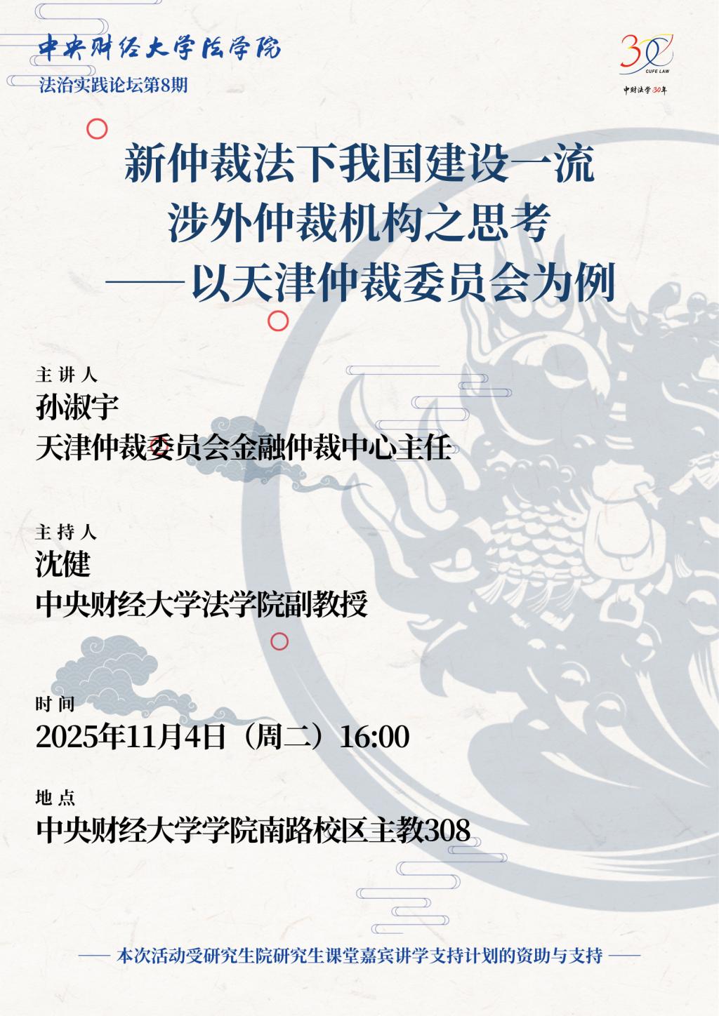 主 题:新仲裁法下我国建设一流涉外仲裁机构之思考——以天津仲裁委员会为例