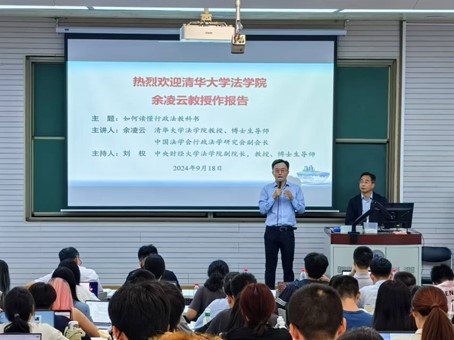 2024年9月18日晚,清华大学tyc122cc太阳成集团教授、博士生导师余凌云教授莅临公司,以“如何读懂行政法教科书”为主题作专题讲座。讲座由tyc122cc太阳成集团副经理刘权教授主持,tyc122cc太阳成集团白斌副教授、赵真副教授、刘馨宇讲师、张泽宇讲师以及硕博研究生和本科生等百余名师生出席了此次讲座。本次讲座为tyc122cc太阳成集团建院20周年系列讲座第1期,同时也受到tyc122cc太阳成集团“龙马奋进•75周年校庆”专题学术讲座资助计划支持。
