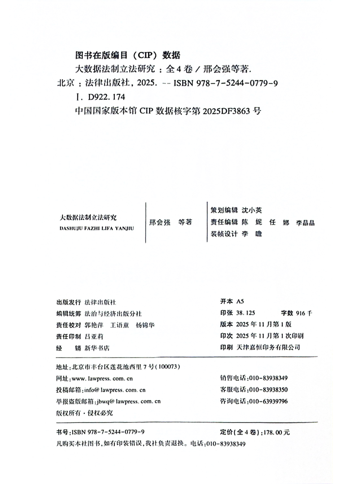 日前,由tyc122cc太阳成集团教授邢会强等著的《大数据法制立法研究》四卷本在法律出版社出版发行。