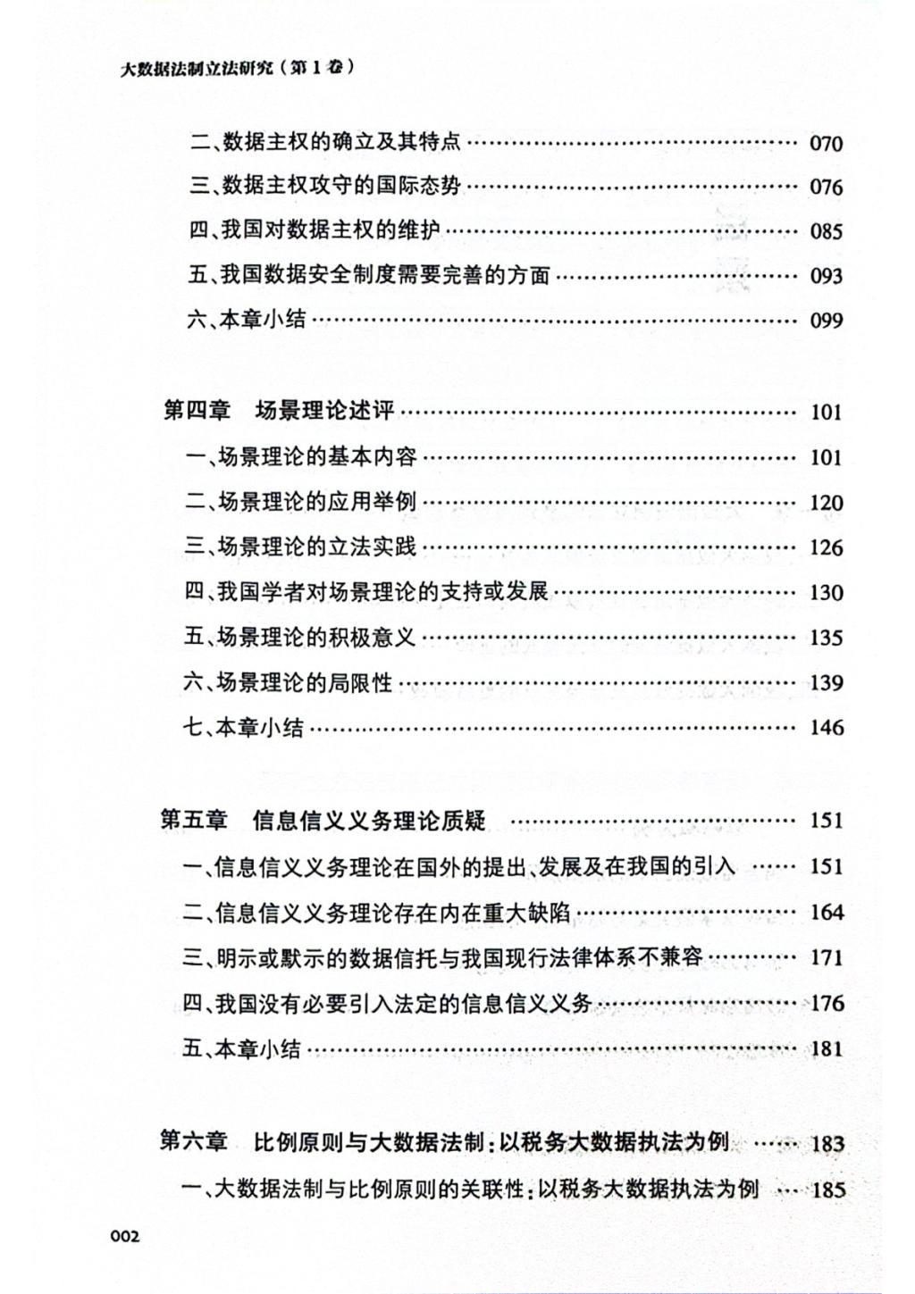 《大数据法制立法研究》共分为四卷,91.6万字。第一卷为《大数据法制立法的基础理论研究》,主要研究相关基本概念、立法模式、立法理念、重要理论等基础理论问题。第二卷为《个人信息保护法的解释、实施与完善》,该部分将重点论述个人信息保护法的解释和实施过程中的若干重要疑难问题。第三卷为《数据共享与开放法律问题研究》,下设三编:第一编为政务数据共享法研究。这是规范政务数据在政务部门之间有序共享,切实保护个人信息权益的重要法律,也是大数据时代亟待立法的法律。第二编为政府数据开放法研究。这是发挥政府掌握的大数据资源,发挥大数据红利,促进创业创新,激发市场活力的重要法律,也是大数据时代亟待立法的法律。第三编为数据交易法研究。这是盘活企业掌握的数据资源,促进企业之间数据资源共享的重要法律,是大数据时代亟待立法的重要法律。第四卷为《数据跨境流动法律制度研究》,重点论述数据跨境流动所涉及的个人信息保护法和数据安全法问题。