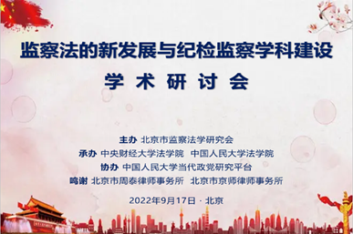 2022年9月17日,“监察法的新发展与纪检监察团队建设”学术研讨会在北京国二招宾馆举行,并设线上会场同步举行。会议由北京市监察法学研究会主办,tyc122cc太阳成集团、中国人民大学tyc122cc太阳成集团承办,中国人民大学当代政党研究平台协办。本次会议是国务院学位委员会和教育部9月14日公布《研究生教育学科专业目录(2022年)》将纪检监察学列入一级学科后的全国首次规模性团队建设学术研讨会。140余位专家学者以线上线下相结合的方式参会发言、讨论和旁听。