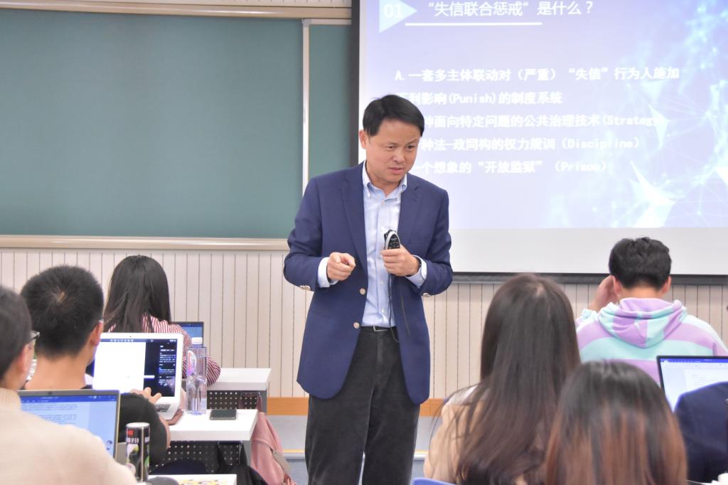 在自由提问环节,同学们就失信联合惩戒制度的法理依据、失信联合惩戒的期限与信用恢复、联合监管主体的有效协同、数据共享以及被遗忘权等问题积极提问。王锡锌教授一一回应。