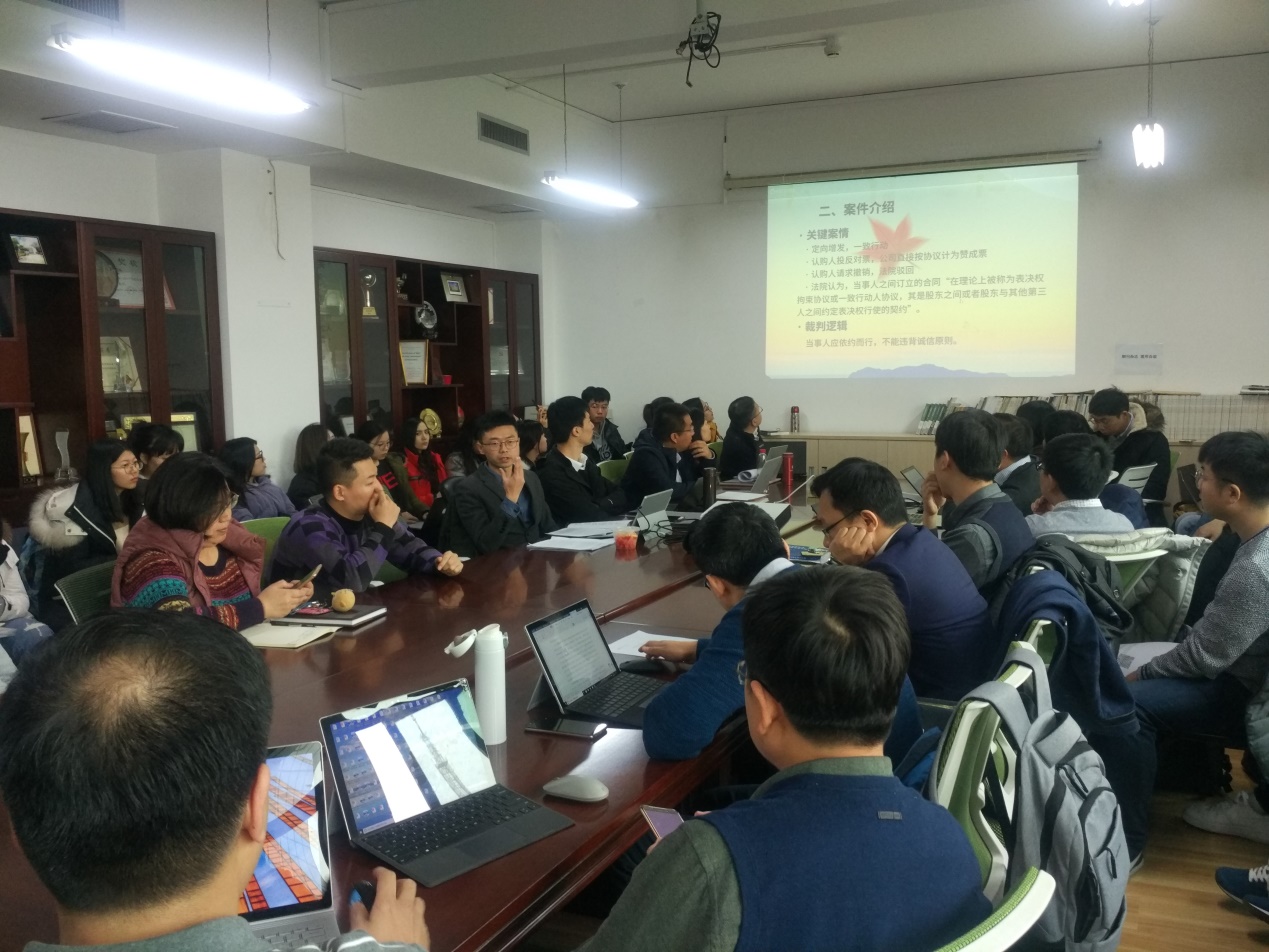 2018年12月5日中午,“公司难路”论坛第53讲“协议缘何‘杀死’决议——以‘江西华电公司决议撤销案’切入”在公司南路校区主教808会议室举行。本次论坛由公司商法教研室副主任周游博士主讲,经理尹飞教授、副经理李伟副教授、曾筱清教授、杜颖教授、黄震教授、曹晓燕副教授、许冰梅副教授、陈飞副教授、朱晓峰副教授、刘君博副教授、郭维真副教授、刘权副教授、赵真副教授、郑玉双副教授、武腾副教授、张晓冰博士、马静远博士、简爱博士、潘佳博士、张金平博士、时业伟博士、白冰博士、徐建刚博士、王道发博士,以及公司部分博士生、硕士生和本科生出席并参加与谈。公司殷秋实博士担任主持人。