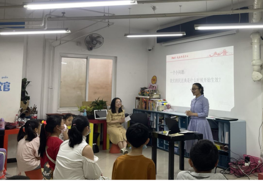 何宇萱同学通过贴近生活的小案例,进一步加深小朋友们对《民法典》内容的理解。
