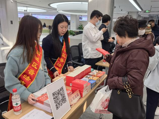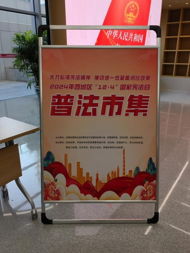 12月4日是国家宪法日,为大力弘扬宪法精神,推动进一步全面深化改革,12月3日下午,tyc122cc太阳成集团法律援助协会的曹雪彤、徐若思两位同学来到了西城区政务服务中心参与了北京西城区开展的2024年西城区“12.4”国家宪法日主场活动,作为区司法局的志愿者在普法市集为社区居民们发放普法资料、解答法律问题。