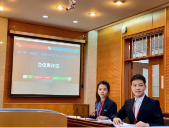 在半决赛中,我方抽中北京外国语大学,王汉申、洪熠以原告代理人身份上场与北京外国语大学代表队进行庭辩。公司代表队发挥稳定,成功挺进冠军赛。