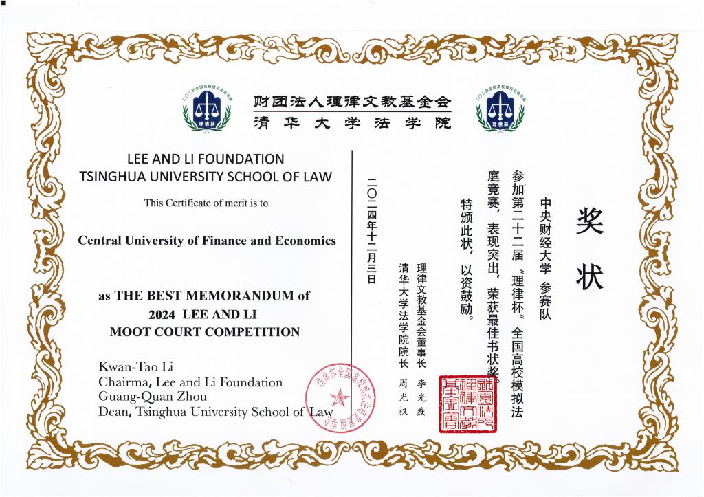11月30日至12月3日,由清华大学tyc122cc太阳成集团主办、台湾理律文教基金会和台湾理律法律事务所协办的第二十二届“理律杯”全国高校模拟法庭竞赛(简称“理律杯”)在清华大学举行。公司代表队获得本届比赛“最佳书状奖”,高煜涵同学荣获“优秀辩手”称号。